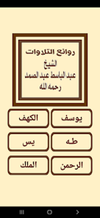 L'application 'روائع تلاوات الشيخ عبد الباسط' est une plateforme multimedia dédiée à la musique et à la radio, permettant aux utilisateurs d'écouter des récitations du célèbre récitant Abdel Basit Abdussamad. Cette application gratuite est disponible sur Android et propose une sélection impressionnante de ses meilleures récitations, incluant des sourates telles que Yusuf, Al-Kahf, Taha, Yasin, Ar-Rahman, et Al-Mulk.
